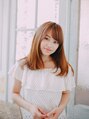 胸上の位置にカットし少し段を入れて毛先を柔らかくしたAラインのスタイルに!バングも目にかかるくらいの少し長めで流すことにより大人可愛い雰囲気に!厚みのあるスタイルなので明るめのカラーで軽さと抜け感を出しました