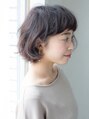 ふんわりとミックスで巻いたあごラインのボブ。バングは眉上バングに、全体の毛先をはねさせることでバランスの良いカジュアルなスタイルになります。耳をかけると大人なフェミニンスタイルにもできるのでどの年代の方にもおすすめできるスタイルです!