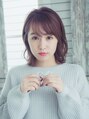 鎖骨くらいの長さに切り、段をいれず切りっぱなしにしました。カラーは明るめの透明感あるピンクベージュに染めてました!バングを流すことにより、大人可愛いスタイルにしました。外ハネも似合うし、伸ばしかけの方のもオススメです。