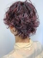 ウルフパーマ、ショートウルフ、ピンクカラー、暖色