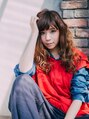 ミディアムロングの内巻きぎみスタイル!そこにプラスでヘアカラーは少し強めのレッドオレンジなのでカラーで少しスパイスを効かせて可愛いの中に強さも感じるスタイルになっています!変化が欲しいときにおすすめです!