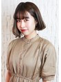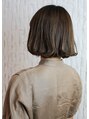 あご下ラインでパツンとカットしたナチュラルボブ。明るめなアッシュベージュで柔らかさをだしました。