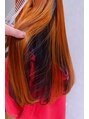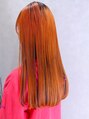 表面を根元3cmあけてブリーチしてます。逆インナーで中を黒で残して立体感を出し、表面をオレンジにしてます