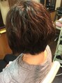 部分ボリュームパーマでトップの膨らみをフワフワに…前下がりレイヤーで軽さをだしてひし形シルエットにしました。