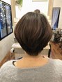 【お客様スタイルです】】顔周りはシャープに見せるために前下がりをベースにカットしました。ペタンコになるのが気になるお客様。後頭部にしっかり丸みをもたせるためにトップは短めに襟足はタイトにカットすることで丸みが際立ちます