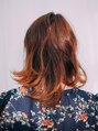 鎖骨下のセミディスタイル。バングはシースルーで少し目にかかるくらいの長めに設定することで大人っぽく仕上がります!太めのコテでざっくり大きめのウェーブをつけて、毛先は外ハネにすることでカジュアルさをプラス!