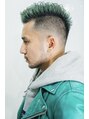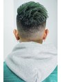 スキンフェードのツーブロックスタイルにエッジの効いたグリーンカラー!!
