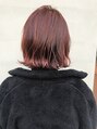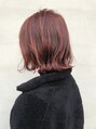 肩につかないくらいの長さでパツンとボブに。オレンジカラーでインナーに赤が入っています。