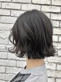 定番の切りっぱなしボブに細めのハイライトを施した後、7トーンのダークアッシュをオン。外ハネとMIX巻きで立体感と透明感が魅力的です!