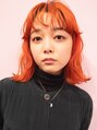 伸ばし中のボブディベースの顔まわりを顎のラインでカット!前髪は両サイドを長めに残してシースルーにしています。カラーは派手めな色こそ根元を残してブリーチするのが今のおすすめです☆