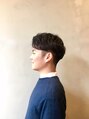 サイドパート、メンズパーマ、アップバング、2ブロック、ジェルスタイル