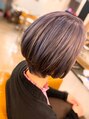 カットはショートグラ★カラーは全体を3回ブリーチ!からのベースにラベンダー系をのせて、ブルーのハイライトでアクセントを♪動きも出て見えます!