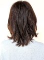 段を入れ、襟足を軽くしたミディアムスタイルです。ラフに乾かすだけで自然な形に仕上げれるのでスタイリングが苦手な方にオススメです。カールアイロンにより少しだけカールをつけて柔らかさを出していますのでストレートは飽きた方にもオススメです。