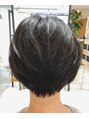 前下がりラインを活かした流れるような素敵なスタイル★トップ、後頭部などのボリュームをカバーしてくれます。暗髪でも毛先の柔らかい質感で重さを感じないのがGOOD★