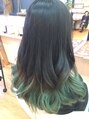 ベースは地毛の黒髪を使って 毛先はターコイズブルーでイメチェンしました。