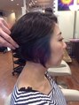 こめかみからもみ上げまでのラインで出てくるインナーカラー♪少しクールさも感じるブルーバイオレッド。お好みの色でインナーカラーが楽しめます^^