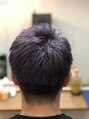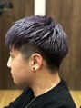 トレンドオススメMEN'SHAIR!!サイドは4mmツーブロック、バックは刈り上げてスッキリさせ、トップは束間が出やすいよう短くカット。カラーはブリーチしてバイオレットとアッシュをのせて透明感のあるカラーに。