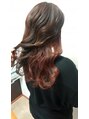 インナーカラーの部分は1度ブリーチをしてピンク色をかぶせました。その他の部分は根元は明るめのグレイカラーで染め他は薄く色をかぶせました。