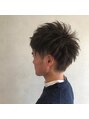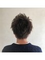 サイドをツーブロックにデザインしたメンズショートです。カラーは透明感のあるカーキアッシュで、セットすることで立体的になります。