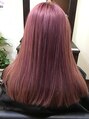 ピンクパープルのご希望バージンヘアのタメ、ブリーチ2回8トーンのピンクパープル