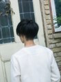 バングをアシンメトリーにした変形マッシュショート。トップに立ち上がりと動きがでるようにバランスよくカット。ほどよい束感がだせるようにカットしているので乾かしただけでもきれいに決まる!1分スタイリング。襟足はすっきりしているのでさわやかに☆