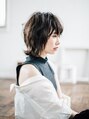 前髪、顔まわりは長めに残して、トップを短くしたウルフスタイルです。外ハネすることで全体のフォルムのバランスをとっています。カラーはダークカラーにハイライトを全体に入れてかっこいい雰囲気に。【瀬田】