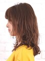 全体にレイヤーを入れて軽く動きが出るようにカットしたミディアムヘア。抜群の小顔効果を発揮する、顔回りのふわっと感と、透け感のある斜めバングがポイントです。【EARTH太田店】