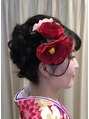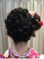 着物の柄に合わせた可愛い編み込みヘアセットとメイク。事前に打ち合わせし、ご本人とお母様の希望を伺いました。