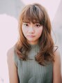 ハイトーンヌーディーカラーにハイライトで動きと透明感をだしています。全体をゆるく巻いて柔らかさをアップ。