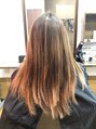 毛先の厚みがそろう辺りで整えて、ふんわりレイヤーを入れて軽さをプラス♪カラーは脱赤味の春カラー、グレージュを全体にオン♪