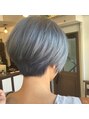 シルバーアッシュのショートボブ。