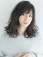 絶妙な長さで作る前髪は毛先は少しパツっと感を残しつつも軽めの透け感がある前髪にし、顎ラインにかかるハイレイヤーで小顔にみえるヘアにしています。明るめアッシュ系カラーで透明感アップ!デジタルパーマを大きめにかけてラフなルーズ質感を手に入れて♪