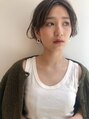 女性らしい柔らかなショートボブにまろやかなワンカラーで作るミルクブラウンのカラーです◎耳にかけるとすっきりしたショートにも見えるスタイル☆