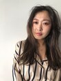 縮毛矯正とブリーチ毛でしたがオーガニックカラーとインカラミトリートメントで柔らかく手触りの良い髪に。カラーはブリーチをいかして柔らかさが出やすいサンドベージュ。カットで表面に動きやすい髪を作り巻いた時により柔らかさが出てくれるように。