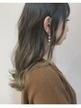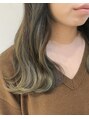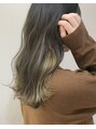 ベースの【シアーグレージュ】の中に大胆にアクセントをつけた【フリンジカラー 】です。あえて表面には入れずに、中にブリーチでグラデーションを作っています。