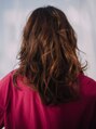重たくなりがちなロングヘアも、柔らかいパーマスタイルとアシメバングで軽やかさをプラス。前髪は少し巻いて丸みを持たせるのがフェミニンに仕上げるポイントです。ヘアカラーはラベンダーアッシュで可愛さと透明感を演出。
