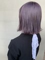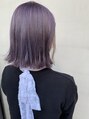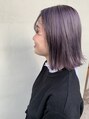 ダブルカラーでの柔らかいパープルグレイ!!切りっぱなしボブにカラーでやわらかさをだしました。根元を少し暗めにカラーするのがおすすめです。
