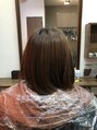 透明感のあるアッシュをバランスよく配合して、重ためボブを軽く見せる春カラーに♪