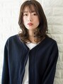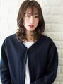シンプルな 重めスタイル に透明感のでる 「HUE」カラーで、グリーンアイビーに。Aラインシルエットでまとまりやすく簡単スタイリングです。今回も、モデルさんの「ピアス」「服」作りました。