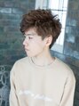 ツーブロックのサイドパートショート。カーリーに強めなパーマをかけてメリハリのあるパーマスタイルに。明るめカラーでカジュアル感、暗髪や黒髪ならワイルド系な印象になります。ツーブロックのラインは毛量やイメージで変えてあげるのもおすすめです!