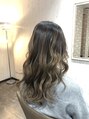 もともとのブリーチで作っていたグラデーションベースにグレージュをオンカラー!ルポリサージュでオンカラーしているのでダメージを与えず艶髪カラーに。