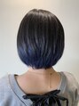 ネイビーカラーの個性派前下がりボブ/ホットペッパービューティー