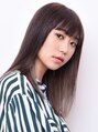 目元を強調したマッシュバング。レイヤーはあまりつけずにブラントなパツっとしたラインで個性的に。インナーカラーでスタイルを強調して人とは少し違ったスタイルに。