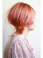 マッシュショートウルフにピンク系の色を入れ、女性らしさをUPさせました!襟足は外ハネにして、顔周りは内に入れかわいらしさを出しました!