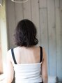 アゴラインの切りっぱなしボブスタイル♪くしゅっとした強めなウェーブをつければ、カジュアルなボブパーマに☆バングは眉上で軽く流し隙間を作ることにより抜け感が作れます!カラーは透明感のある寒色系にしてシアーな仕上がりに☆