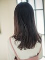ノンレイヤーのナチュラルなロングスタイル。毛先にはデジタルパーマでワンカールをつけて動きをプラスして柔らかな雰囲気に。マッシュラインの前髪が可愛い印象。抑えめなブラウンカラーでツヤ感と透明感をだしています。