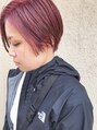 ブリーチオンカラーのペリーピンク。カットは直毛をいかして前下がりのショートに。