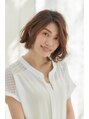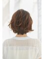 前下がりのボブベースに少し強めのパーマをかけたヘアスタイルです。春らしく毛先を動かし片耳を掛け抜け感を出す事によってもっさりし過ぎないパーマスタイルの完成です。
