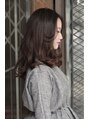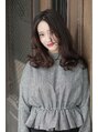 重めのミディアムスタイル。大きめカールを毛先に入れることでAラインのシルエットが可愛いヘアスタイル。トップの表面にレイヤーをいれて、柔らかい動きのあるニュアンスに。前髪はリップラインでパツッと重さを残して切って印象的に♪