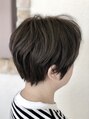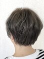 <新色ティア>の明るめカラーです。この色のコンセプト通り、瑞々しい透明感を表現してくれます。赤みをしっかり抑えた、軽い雰囲気のアッシュが好きな方にオススメのカラーです。カットは軽い雰囲気で、動きの付きやすいショートスタイルにしてあります。